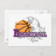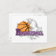 Itens de basquete com basquete, globo e texto roxo em T-shirts, canecas, ímanes, cartões, adesivos, mousepads, chaveiros e outros artigos de basquete.