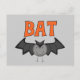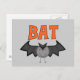 Um morcego preto do Halloween e um texto laranja que diz "BAT" em t-shirts de morcegos, fatos, canecas, cartões, autocolantes, sacos de tote, botões, ímãs e outras t-shirts e presentes MTD do Halloween.