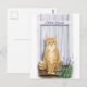 Cartão Postal Tabby Laranja Gato à Porta com Flores de Lavanda