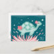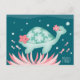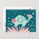 Cartão postal "Tartaruga Marinha Maui" com uma ilustração de uma tartaruga marinha e uma estrela-do-mar cercada por bolhas, peixes e flores de hibisco. Flutuando no oceano de Maui, Havaí.