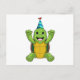 Cartão Postal Tartaruga na festa de aniversário com chapéu de fe