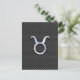 Um cromo prateado como Taurus Zodiac Sinal em um fundo impressão de design de fibra de carbono preto. Um design moderno urbano para uma ideia personalizada de presente de excelente. Designs de bordados estão disponíveis em uma seleção de opções populares de cor. Use o link "Perguntar a este Designer" para entrar em contato conosco com suas solicitações especiais de design ou para obter assistência com suas necessidades de personalização.