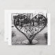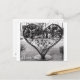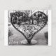 Imagem negra e branca de uma escultura em forma de coração de ferro moldada e uma mensagem de amor correspondente.