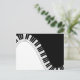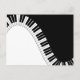 Um teclado de piano preto e branco em curvatura divide o preto do branco neste design de gráfico branco que certamente encantará o músico.