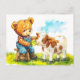 Cartão Postal Teddy Bear Feeding a Calf