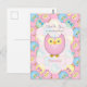 Cartão Postal Tema de Chá de Bebê Menina Coruja Rosa Pastel