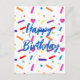 Cartão Postal Tema de Festa de Aniversário com Confetes Doces