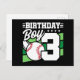 Cartão Postal Tema de Festa de Baseball com 3 anos aniversário d