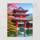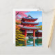 Árvores e natureza cercam o templo japonês e refletem da arte aquática próxima.