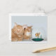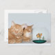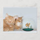 Os felinos laranja compartilham um tempo de qualidade juntos assistindo leisuamente um peixe-dourado nervoso no seu cartão-postal de foto da tigela