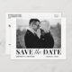 Modern Trendy Save The Date Black and White Photo Postcard com script de bloqueio e combinação de script de caligrafia.