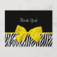 Diga obrigado a você com este obrigado preto e branco de tendências que você faz com um padrão de impressão zebra e uma fita amarela fofa amarrada em um arco. Vazio atrás. Imagem impressa plana, não fita real.