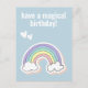 NovaParkLane - Cartão de aniversário fofo para crianças, com um doce unicórnio arco-íris, que diz: 'Tenha um aniversário mágico!', contra um fundo azul suave (a cor pode ser alterada), e um desejo de aniversário personalizado no verso!