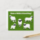 Este cartão postal divertido é perfeito para quem ama ovelhas. Ela apresenta a mensagem "Tenha um dia muito bom!", mas pode ser personalizada com sua própria saudação. Este cartão-postal apresenta ilustrações de ovelhas Valais Blacknose, em branco e preto, sobre um fundo verde brilhante.