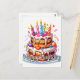 Este cartão postal único apresenta uma ilustração colorida de um bolo de aniversário festivo. Este cartão postal faria uma saudação de aniversário verdadeiramente maravilhosa para amigos, familiares e colegas de trabalho.
