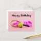 Tênis com raquete no cartão de aniversário cor-de-rosa