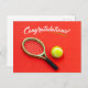 Cartão Postal Tênis e parabéns de esfera em vermelho