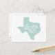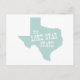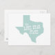 Apresentando a forma do mapa esboço da silhueta do grande e belo estado do Texas preenchido com um fundo verde claro sólido e o apelido dos Estados de "O Estado Estrela Solitária" escrito na frente deste cartão postal é uma ideia excelente de enviar uma nota pessoal escrita para qualquer pessoa no Estado Estrela Solitária.