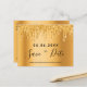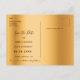 Um cartão de data moderno e moderno para uma festa de aniversário de 50ª (ou qualquer idade). Uma folha metálica de ouro falsa, com aspecto de fundo decorada com pingos de brilho dourado falso. Na frente: Personalize e adicione uma data e nome/idade 50. Letras pretas coloridas. O texto: Salvar a Data é gravado com um script de estilo com letra de tendência grande. Voltar: detalhes da sua festa.