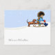 Envie desejos quentes neste inverno com cartões postais personalizáveis com este design bonitinho. Manga de criança e cão na ilustração de neve. (c) 2010 Off-Leash Art.