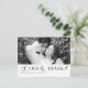Apresentamos nosso cartão postal de agradecimento de casamento "Simple Elegant Text and Photo". Esses cartões-postais elegantes e sofisticados são a maneira perfeita de expressar sua gratidão aos convidados após o casamento. Com um design limpo e elegante, com espaço para uma bela foto do seu dia especial e uma mensagem de agradecimento sincera, esses cartões-postais combinam simplicidade e sofisticação. Feitos de materiais de alta qualidade, garantem durabilidade e um acabamento polido.