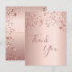 A rose gold faux metallic looking background. With rose gold, copper colored dripping sparkling stars. On front large dark rose gold colored hand lettered script and the text: Thank You.