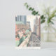 Modern graphic illustration of The High Line elevated park in NYC, featuring stylized pastel foliage, surrounding contemporary buildings, and a busy street below.