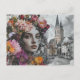 Cartão Postal The Lady Collage With Flowers and Buildings