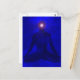 O Third Eye Chakra é o sexto chakra e também é chamado de olho da intuição. A cor chakra é azul escuro. O Ajna chakra vê além do mundo físico. No centro está a Flor da Vida com figura meditante. Painel 6 de 7