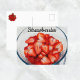 Cartão postal fotográfico de morangos vermelhos frescos fatiados em uma tigela. No verso há uma fotografia de morangos maduros inteiros. Esta imagem é uma fotografia original de JLW_PHOTOGRAPHY.