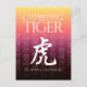 Celebrar o novo ano chinês com este cartão-postal na moda, que apresenta a forma de letra chinesa para o Tigre, o terceiro sinal/animal no zodíaco oriental, e as celebrações tradicionais chinesas de saudação, feitas sobre um fundo de gradiente dourado a vermelho. Design © W.H. Sim. Mais informações em zazzle.com/expressionsoccasions