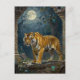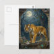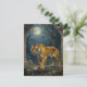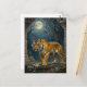 A tiger themed postcard to keep in touch and say hi to friends and family. The front has a majestic impasto illustration of a golden tiger walking through the ancient dunes, full moon up in the sky shining down on the tiger's golden fur.