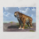 Verdadeiramente, bonito, retrato de um tigre do dente do Saber (fatalis de Smilodon) que negligencia um paleo a Grandes Planícies sobre de um monte na borda de seu habitat da floresta.