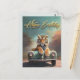 Cartão Postal Tigre sentado em um carro esportivo Feliz aniversá