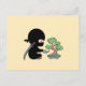 Cartão Postal Tiny Ninja cuidando da árvore Bonsai em amarelo
