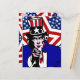 Cartão Postal Tio Sam com Stars & Stripes em Segundo Plano