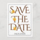 Tipografia marrom elegante e casamento outono rosa cor de laranja Salve o cartão-postal Data. Mostra a frase "Salvar a Data" em uma fonte decorativa em marrom e um buquê de rosas laranja, a data do seu casamento e uma fronteira negra na frente. As costas incluem detalhes do seu casamento.