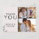 Este obrigado de tipografia floral que você fotografa é perfeito para um casamento elegante. A design romântica apresenta uma simples inscrição decorada com flores, uma cobertura botânica e um sutil fundo de pincel. Personalize o cartão com 3 fotos de casamento, seus nomes e seu endereço de retorno (no verso).