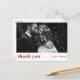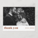 Envie agradecimentos aos seus convidados com este cartão postal de agradecimento com foto personalizável. Ele apresenta uma tipografia negrito retrô com um fundo terracota. Este cartão de agradecimento será perfeito para vários eventos, como casamentos e formaturas. Personalize adicionando suas fotos horizontais favoritas. Disponível como cartão liso e dobrado.