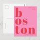 Cartão postal tipografia rosa vermelha Boston Mass