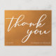Este cartão postal de agradecimento de casamento rústico dourado apresenta uma tipografia branca elegante sobreposta a um gradiente de tons terrosos sutis. Tons simples de laranja claro e marrom seguem as tendências atuais de outono para um casamento boêmio neste outono. Complete a aparência com seu monograma minimalista e data do casamento.
