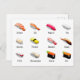Cartão postal Sushi legal com vários tipos diferentes de Sushi e seus nomes. Excelente para qualquer fã de Sushi ou da cultura de comidas japonesa.
