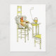 A pequena galinha vermelha reclina contra um travesseiro fofo numa cadeira de escada-de-costas, exausta após um dia de tarefas, e espera que seu chá mergulhe nesta ilustração da safra de um livro infantil de 1907.