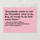 "Todo mundo quer dizer ao presidente o que fazer. Cara, ele precisa ser avisado muitas vezes."—O Presidente Richard Nixon Black escreve sobre um fundo rosa. Richard Nixon disse isso quando se reuniu com seu funcionarios imediatamente depois de anunciar que se demitiria, e disse isso de uma forma que indicava que desejava ter ouvido mais pessoas em vez de se rodear com um pequeno grupo. Tente passar a mensagem ao Presidente.