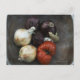 Cartão Postal Tomate herbáceo, cebola amarela, cebola vermelha,