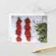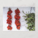 Tomates italianos de ameixa brilhantes pendurados ao lado de uma casa em Itália, sendo secos ao sol. A cor vermelha brilhante dos tomates realmente pop contra a parede branca do prédio. À medida que os tomates secam ao sol, eles começam a encolher e a se tornar um vermelho rico e profundo. Uma visão ao redor da bela costa italiana de Amalfi.