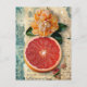 Esta imagem mestiça é uma mistura deliciosa de citros frescos e flores delicadas. A imagem apresenta uma colagem no estilo do álbum de recortes de diferentes elementos, incluindo uma fina fatia de toranja e belos arranjos florais. A fatia de toranja adiciona um pop de cor e frescura à imagem, enquanto as flores trazem um toque de elegância e beleza. O efeito geral é uma impressionante e única obra de arte que captura a beleza natural desses elementos simples, mas maravilhosos.