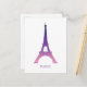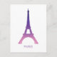 Este design apresenta uma Torre Eiffel abstrato em roxo e rosa.