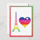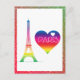 Qualquer um adoraria receber este cartão postal giro e brilhante, com um coração arco-íris e uma ilustração colorida da Torre Eiffel em Paris, França!