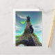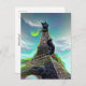 A Torre do Gato Eiffel é um marco surreal do Paris da sua imaginação. O céu do crepúsculo e uma lua crescente formam uma paisagem estranha para este felino preto gigante e difuso e arquitetura distorcida. Sonhe com cores cósmicas e ídolos gatunos com este cartão postal estranho, mas legal.